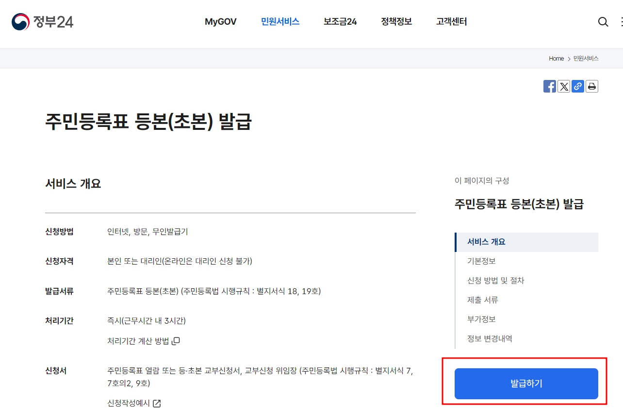 3. 주민등록등본 발급 소요 시간