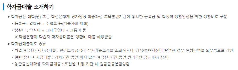 대학 등록금을 지원하는 대출로, 일반 상환 학자금과 취업 후 상환 학자금(든든학자금)으로 나뉩니다.